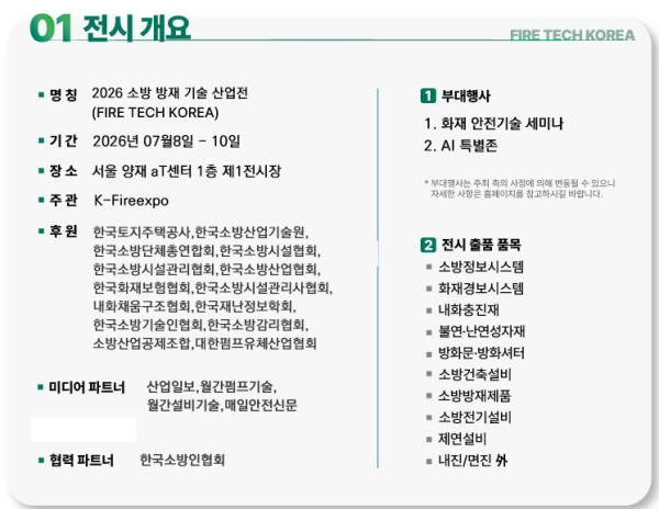 저희가 이번 26년 7월 8일부터 10일까지 개최되는 [소방방재 기술산업전] 에 참여하게 되었습니다.